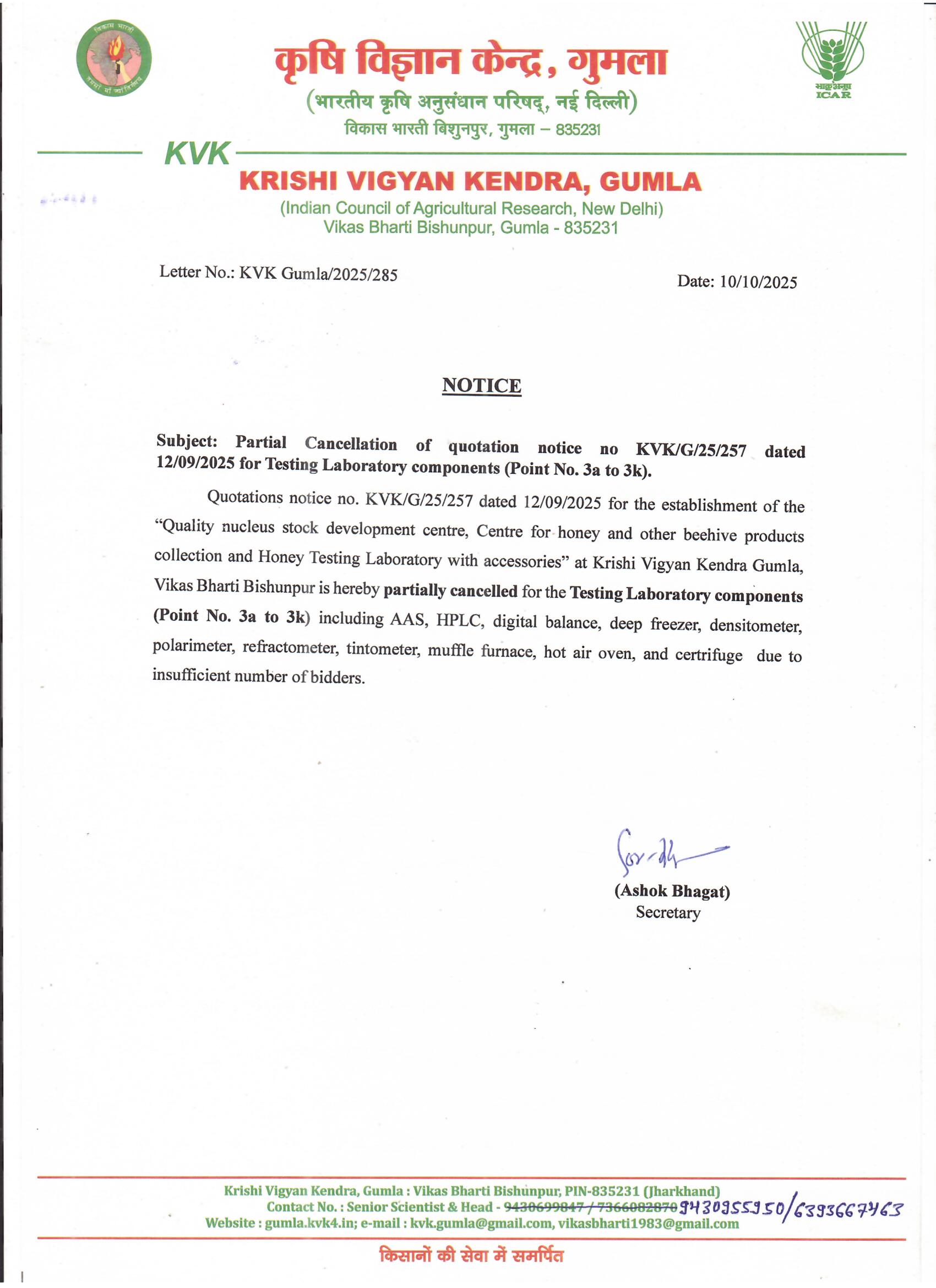 1 | Cancellation of quotation notice | Cancellation of quotation notice under NBB | 2025-10-11 | 2025 | View / Download |